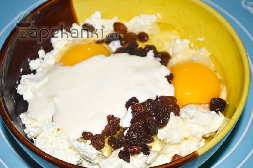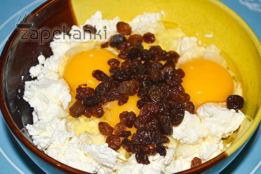 Творожная запеканка с изюмом и лимонной цедрой в мультиварке