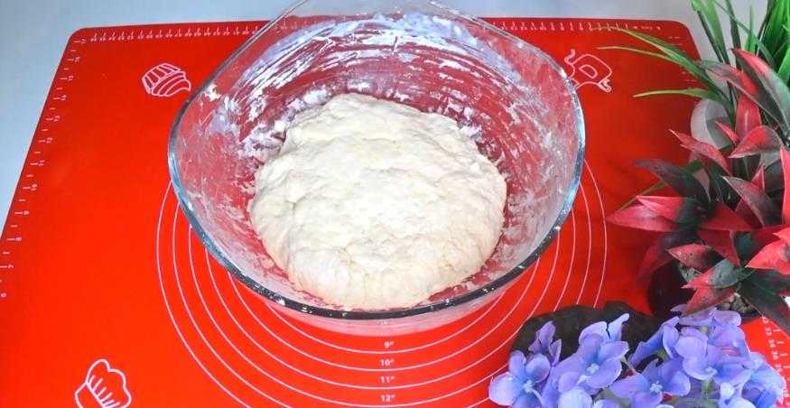 В 0,5 литра теплой воды растворяем 2 чайные ложки соли и сахар, добавляем сухие дрожжи, размешиваем до растворения. Всыпаем около 4 стаканов муки, замешиваем тесто и оставляем в тепле до подъема.