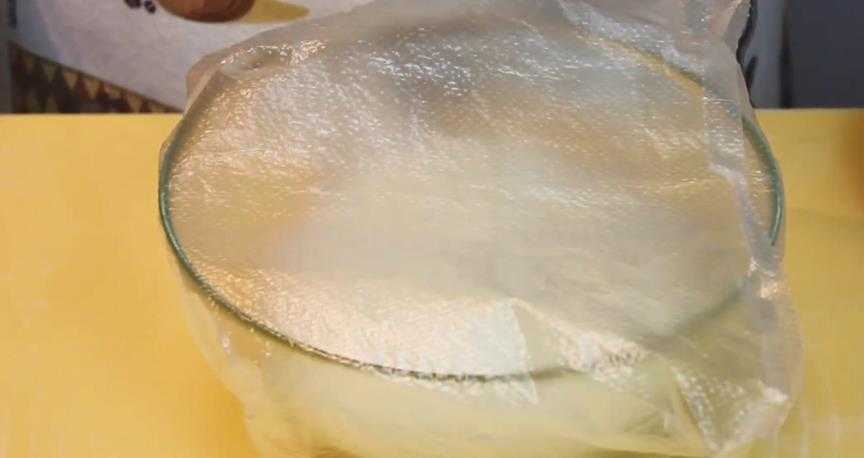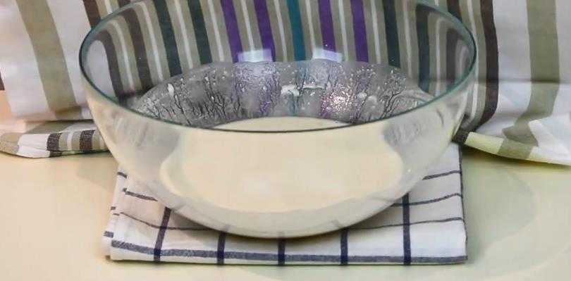 В кефир добавляем соду и перемешиваем. Сразу пойдет реакция и в кефире появятся пузырьки, объем кефира увеличится в разы.