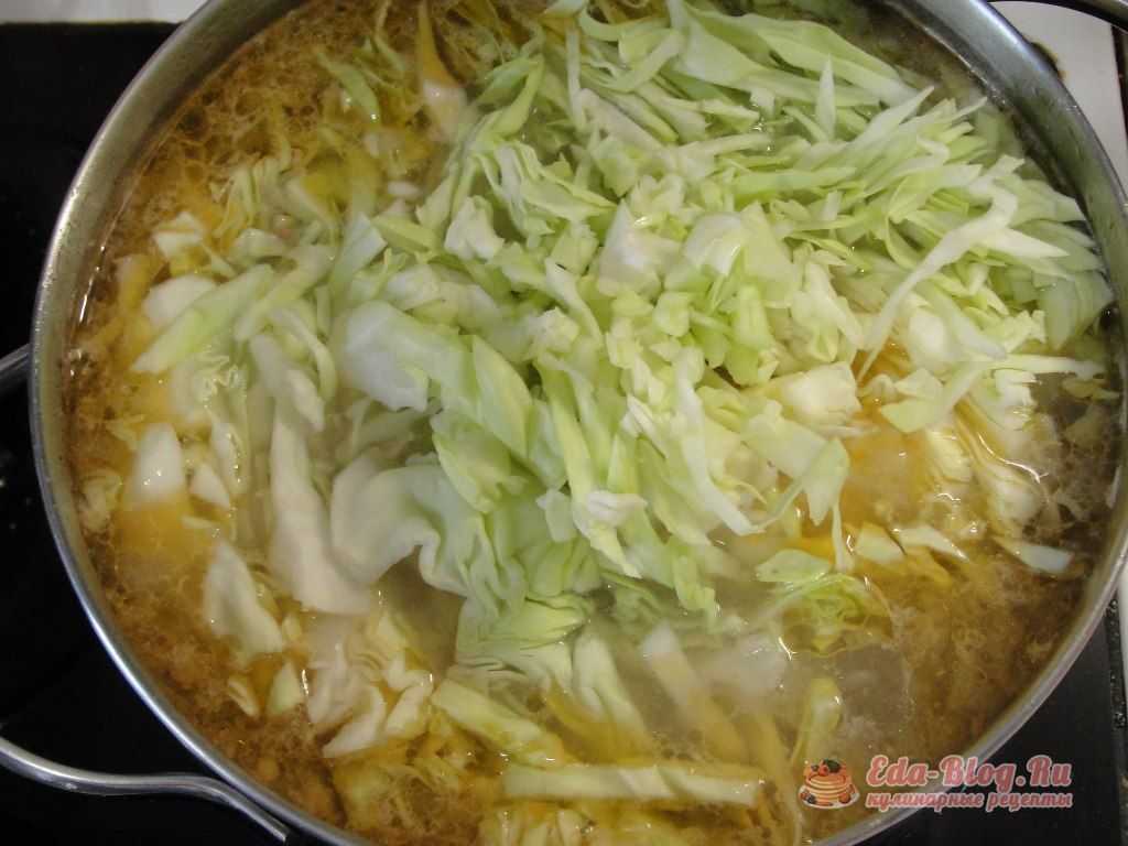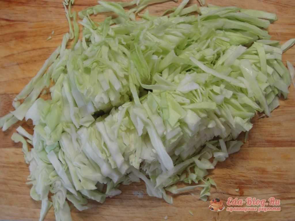 Варите до полуготовности картофеля. В это время нашинкуйте капусту.
