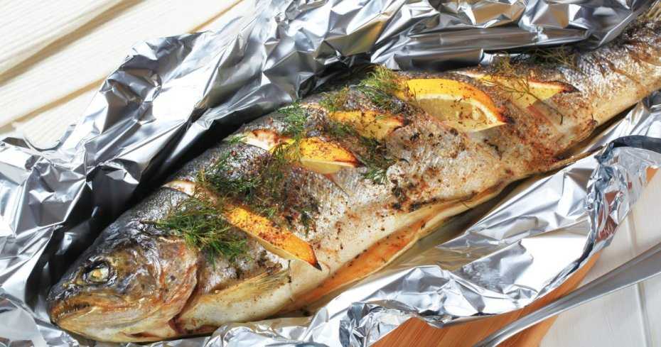 - За 5-10 минут до готовности приоткрыть фольгу и дать форели подрумяниться при тех же показателях температуры.