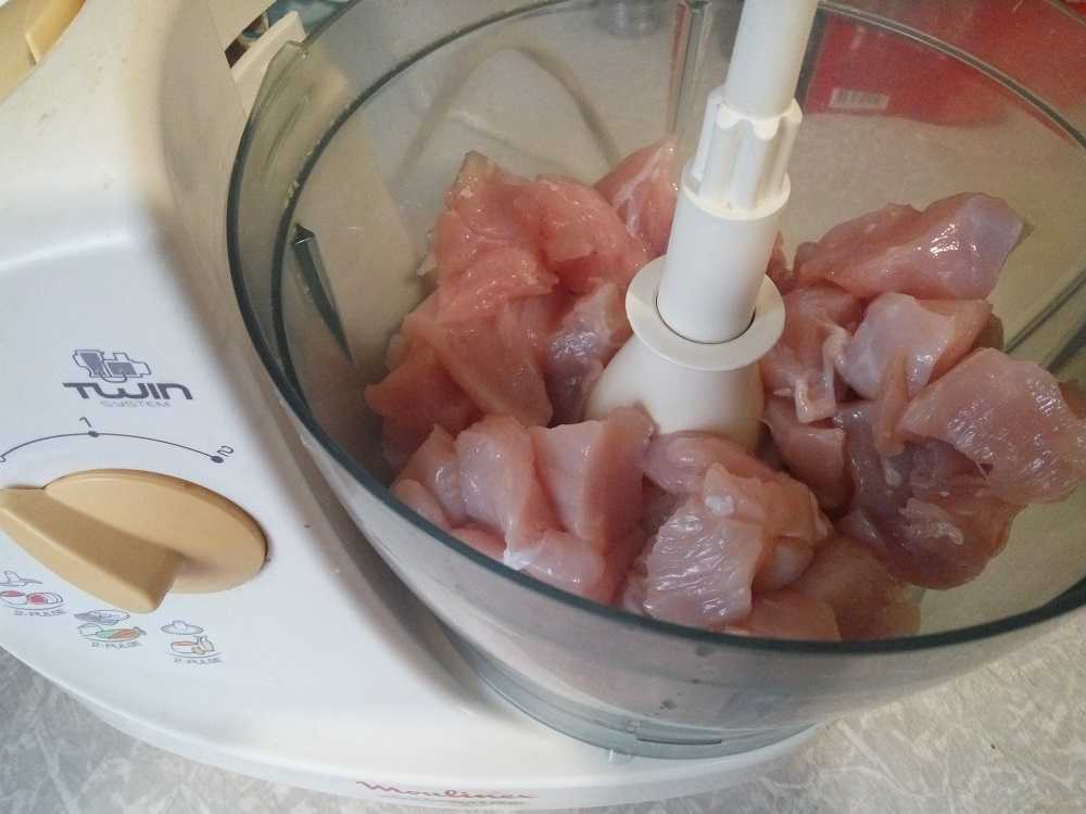 Итак, для приготовления фрикаделек мясо порезать на кусочки и измельчить — с помощью мясорубки или кухонного комбайна.
