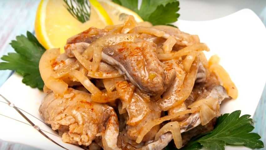 Луковый сок, который выделится в процессе приготовления, обогатит мясо не только прелестным вкусом, но и дополнительными полезными свойствами. А другие специи придадут конечной закуске пряность.