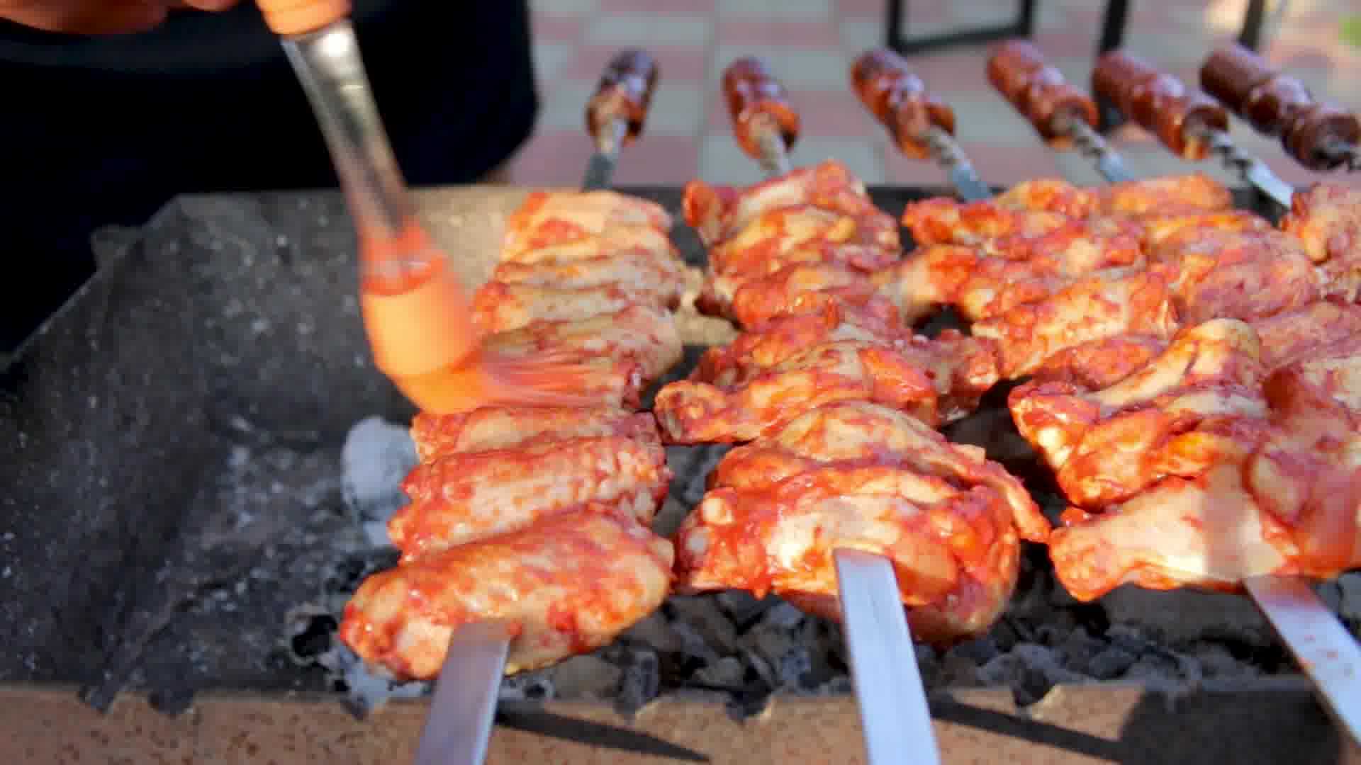 - В Китае барбекю называется шаокэ (烧烤) и включает в себя маленькие кусочки мяса, рыбы, овощей или тофу, нанизанные на шампуры и жареные на гриле с соусом из соевого соуса, чеснока, сахара и специй.