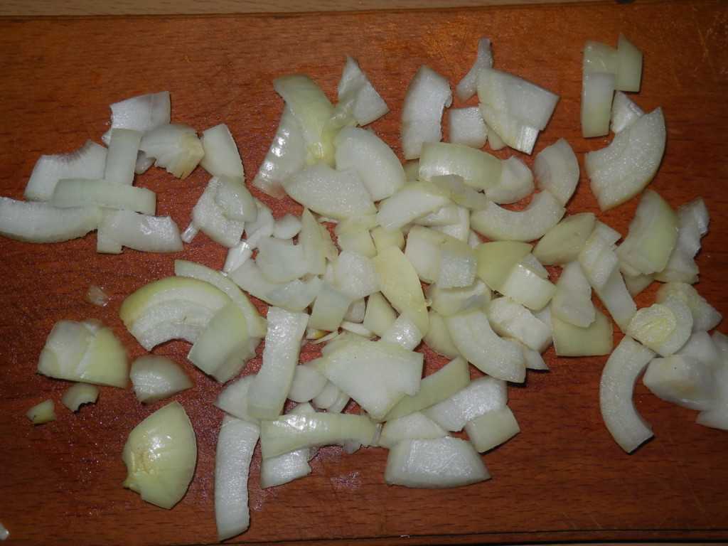 - Этот рецепт не предусматривает привычное измельчение лука, как для зажарки, лук разрезаем вдоль, а затем каждую часть режем крупными перьями.