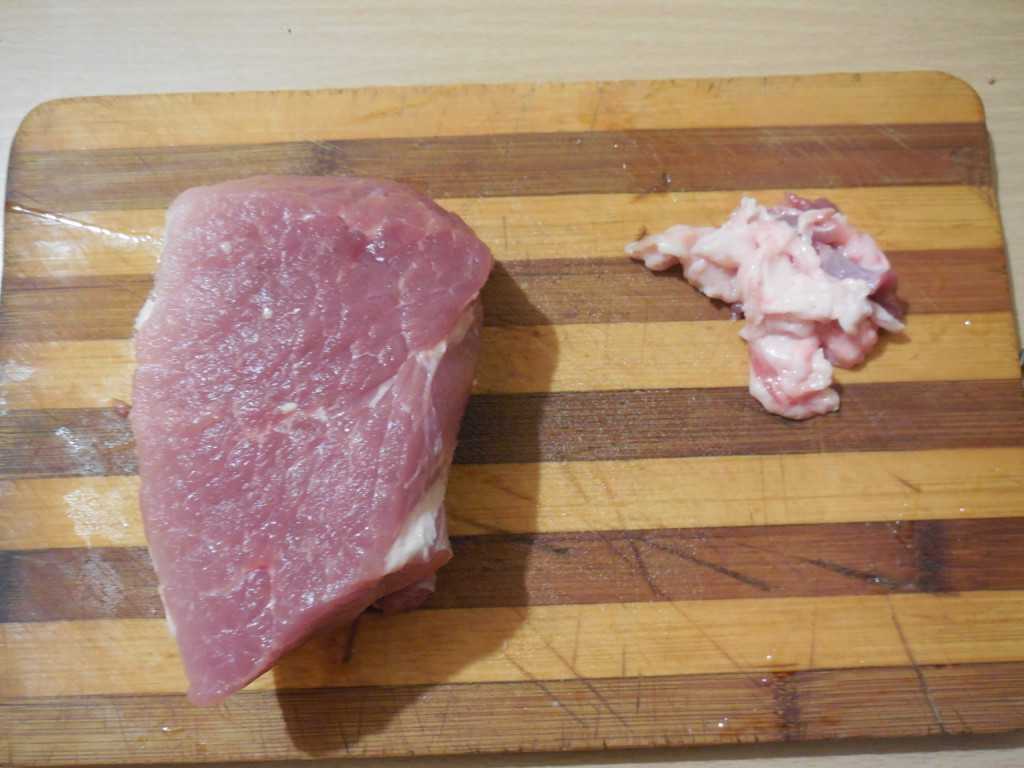 За это время мы успеем подготовить мясо. Вымытые под проточной водой куски обязательно зачищаем от плевы и удаляем ножом прожилки.