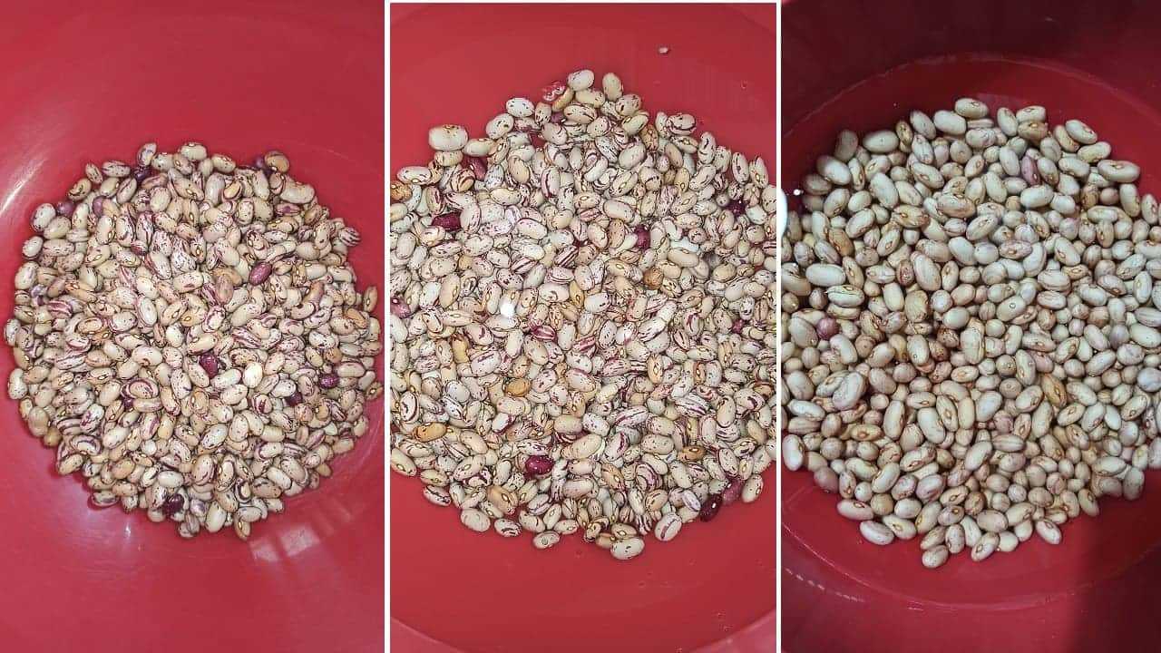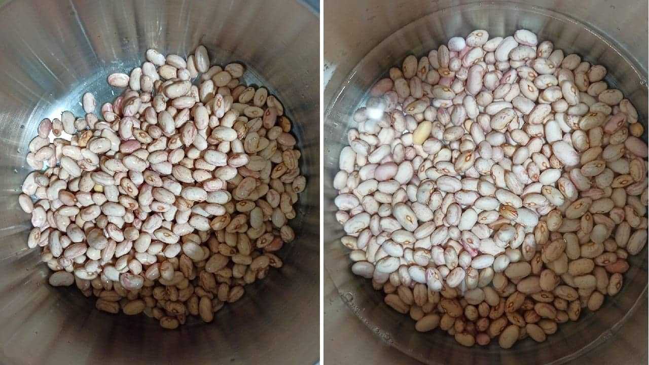 Накануне вечером возьмите большую миску, наполните ее свежей водой и поместите внутрь сушеные бобы для замачивания. Это займет около 10-12 часов.