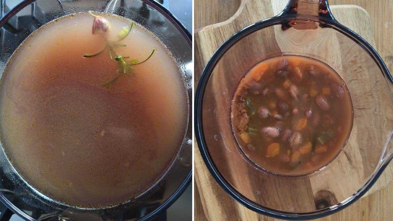 В этот раз воду после фасоли нужно будет сохранить и отлить в отдельную посудину (она нам еще пригодится).
