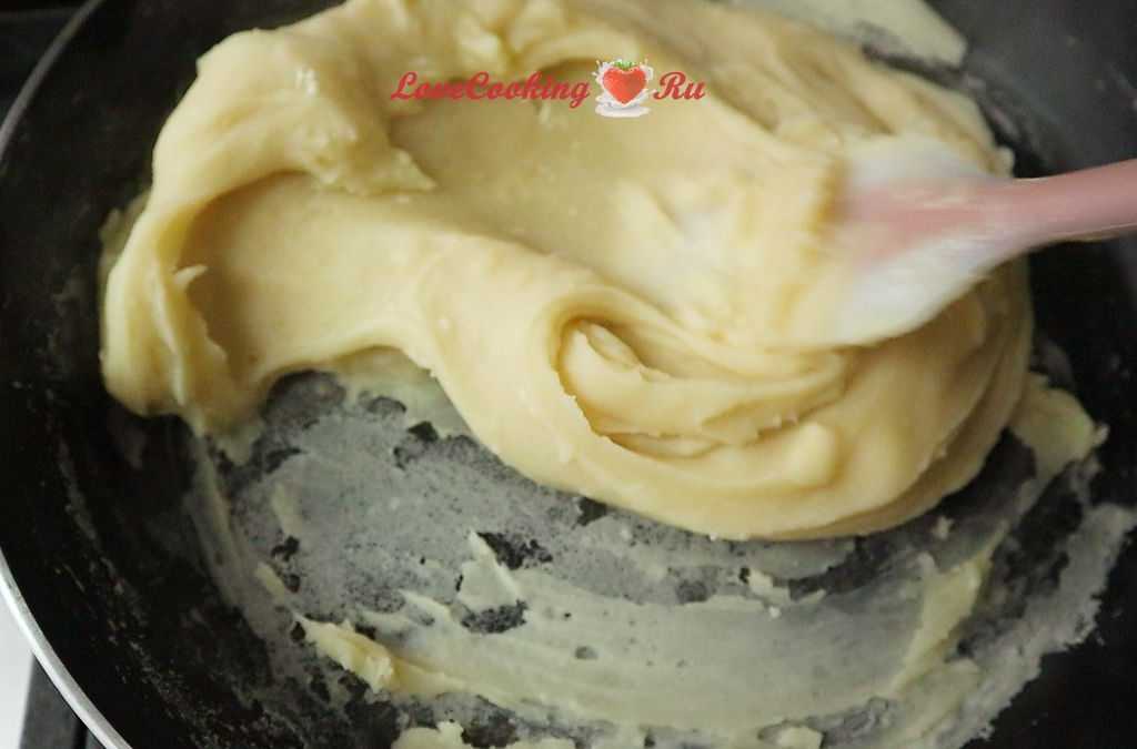 Важно пасту не переварить, а то, говорят, при остывании станет как бетон. Если почерпнуть ложкой массу, перевернуть назад и эта «плюха» уже держит форму, то крем готов