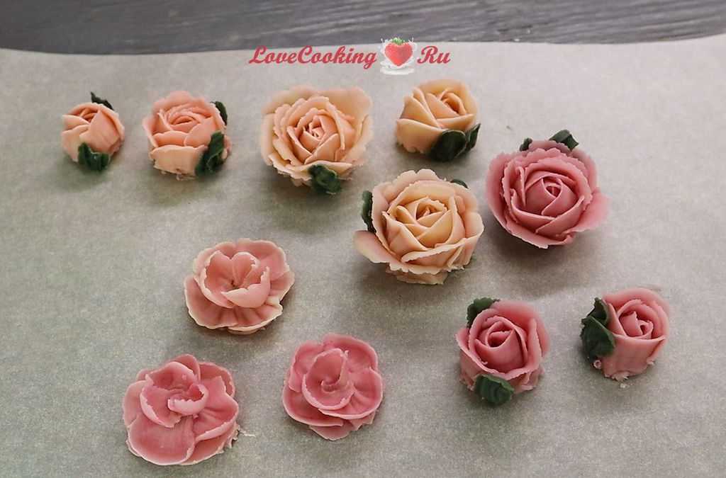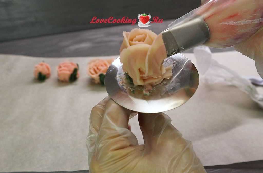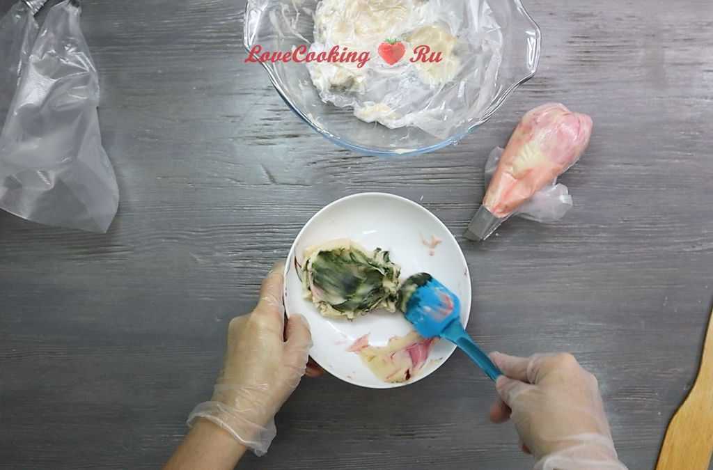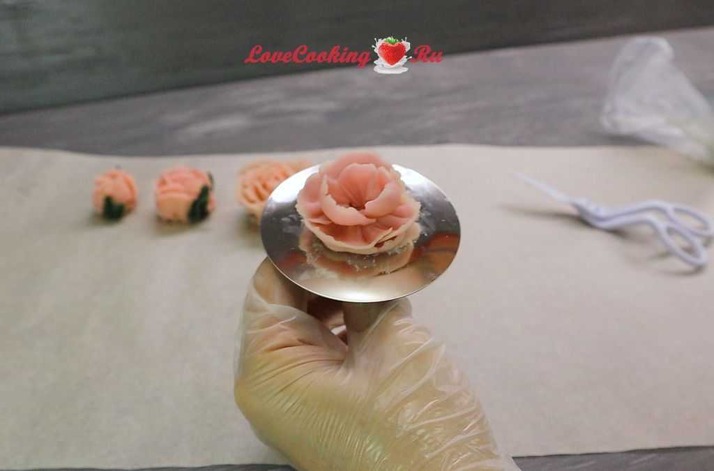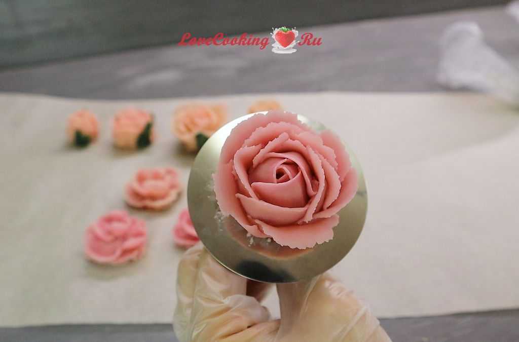 Готовый крем отлично окрашивается и хорошо хранится в морозильной камере. При заморозке готового декора времени потребуется чуть больше, чем масляных изделий. Замороженное изделие легко переносится на торт и отлично сохраняет свой вид. Приятных вам экспериментов!