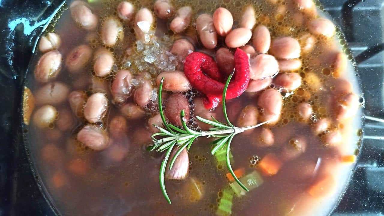 Оставьте вариться примерно на 1 час. По истечении времени достаньте из кастрюли розмарин и чеснок, а бобовые переложите в миску.