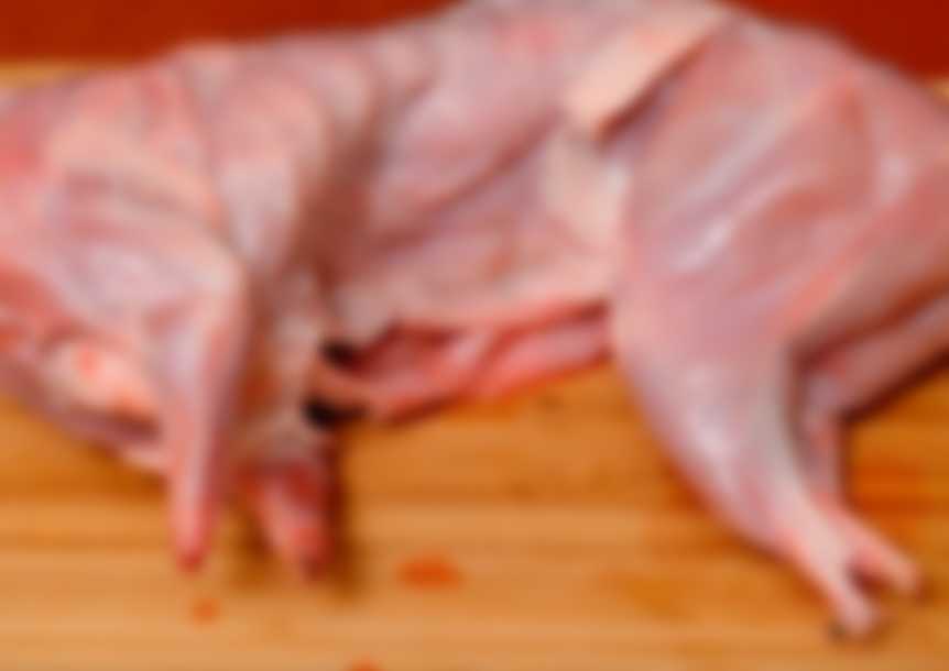 Замочить на ночь кролика в равных частях воды и уксуса. На следующий день промыть и обсушить.