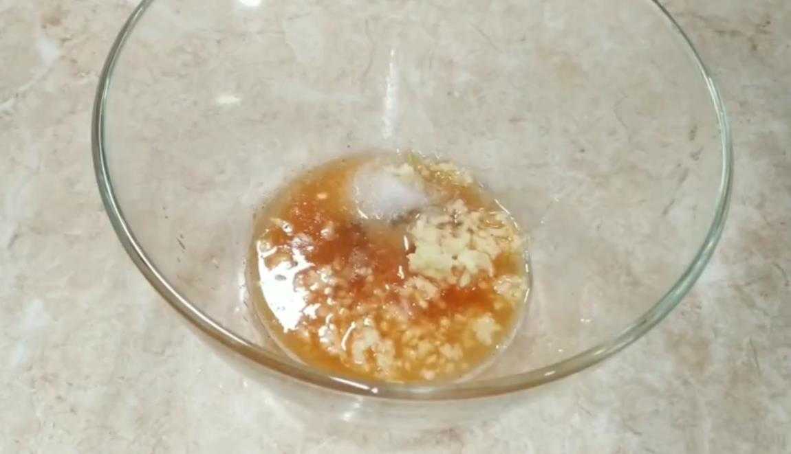 - Для маринада: смешивайте соль, специи, чеснок, 50-75 мл оливкового масла.