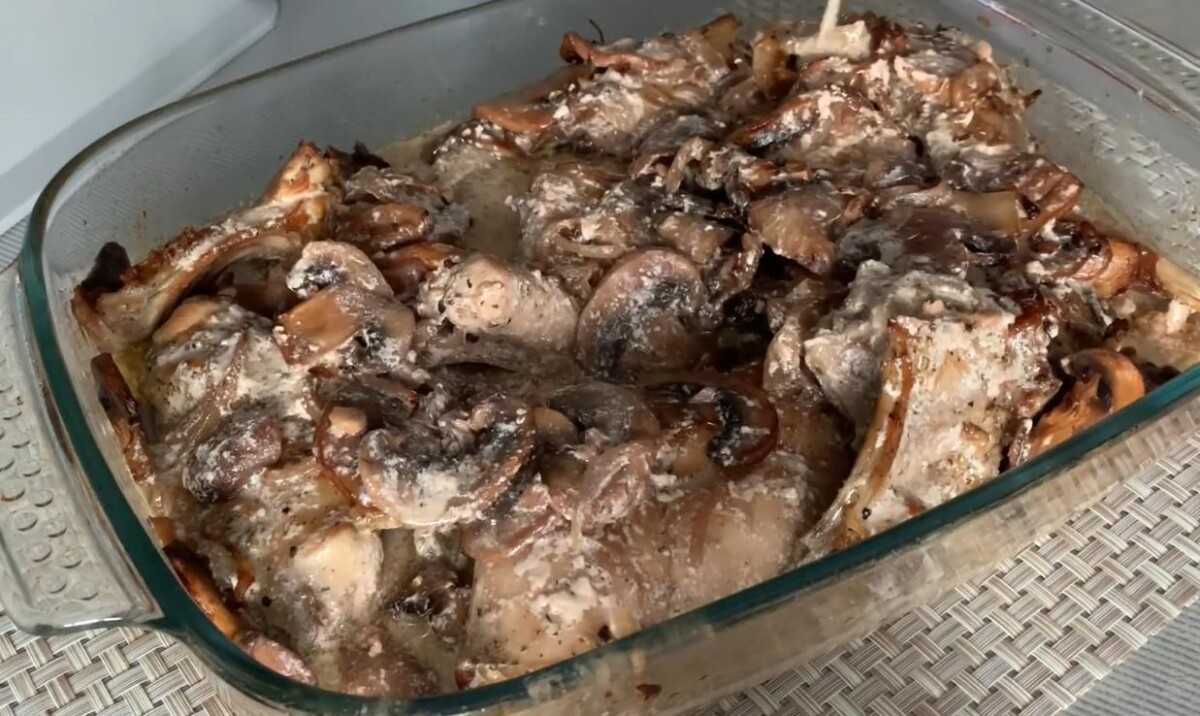 Получается нежнейший! А грибы здорово пропитываются в сметанном соусе и впитывают его, поэтому так вкусно!