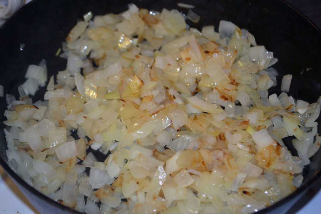 - Обжариваем лук и морковь на той же сковороде, где жарили мясо.