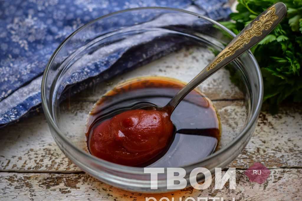 Подготовим необходимые ингредиенты: томатную пасту, чеснок, смесь перцев и соевый соус.