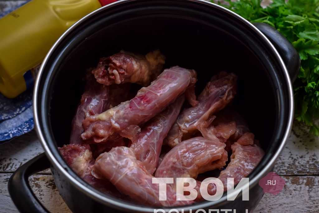 шаг 1. Промытую шею складываем в подходящую по размеру кастрюлю или кастрюлю.