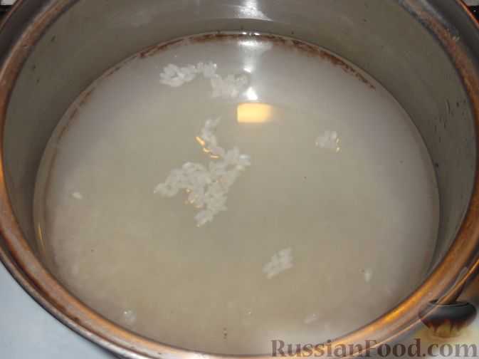 Рис нужно хорошо промыть под проточной водой, чтобы вода выходила уже прозрачная.