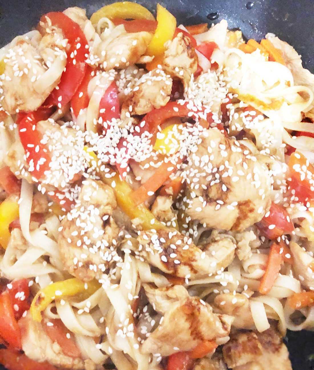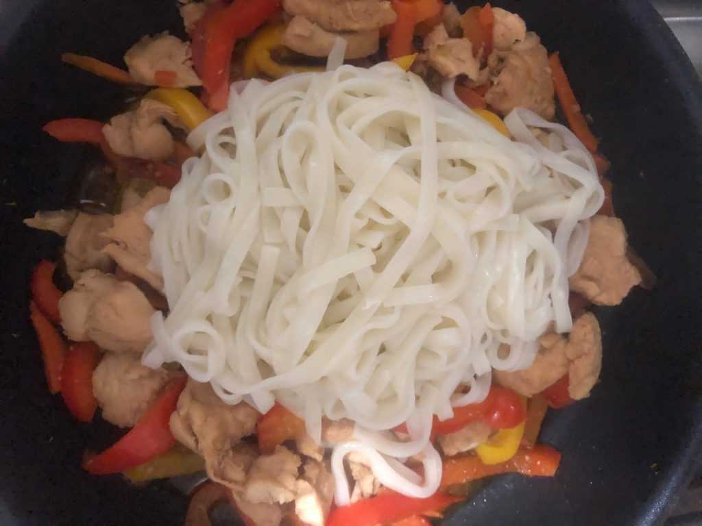 Лапша удон с курицей и овощами в соусе терияке готова.