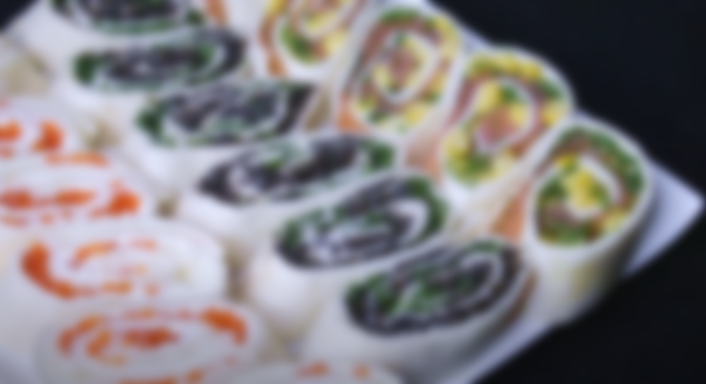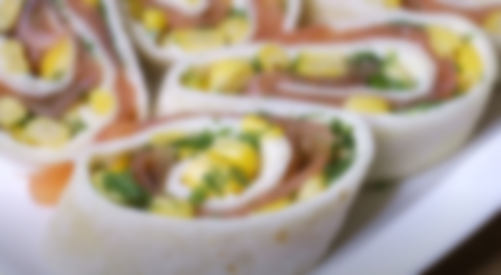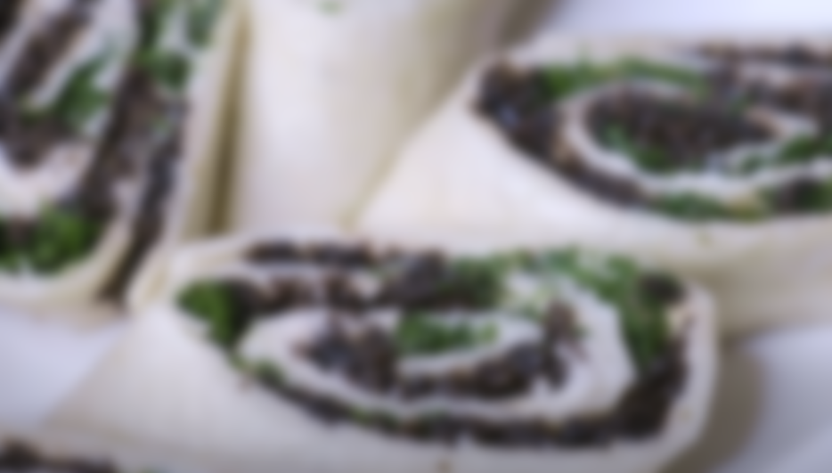Закуски в лаваше с маслинами, красной рыбой и икрой
