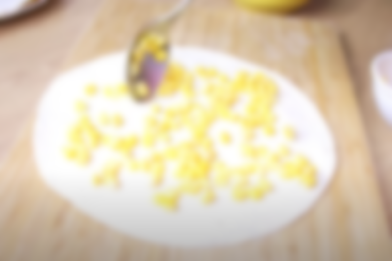 - Присыпаем консервированной кукурузой и мелко нарезанным укропом.