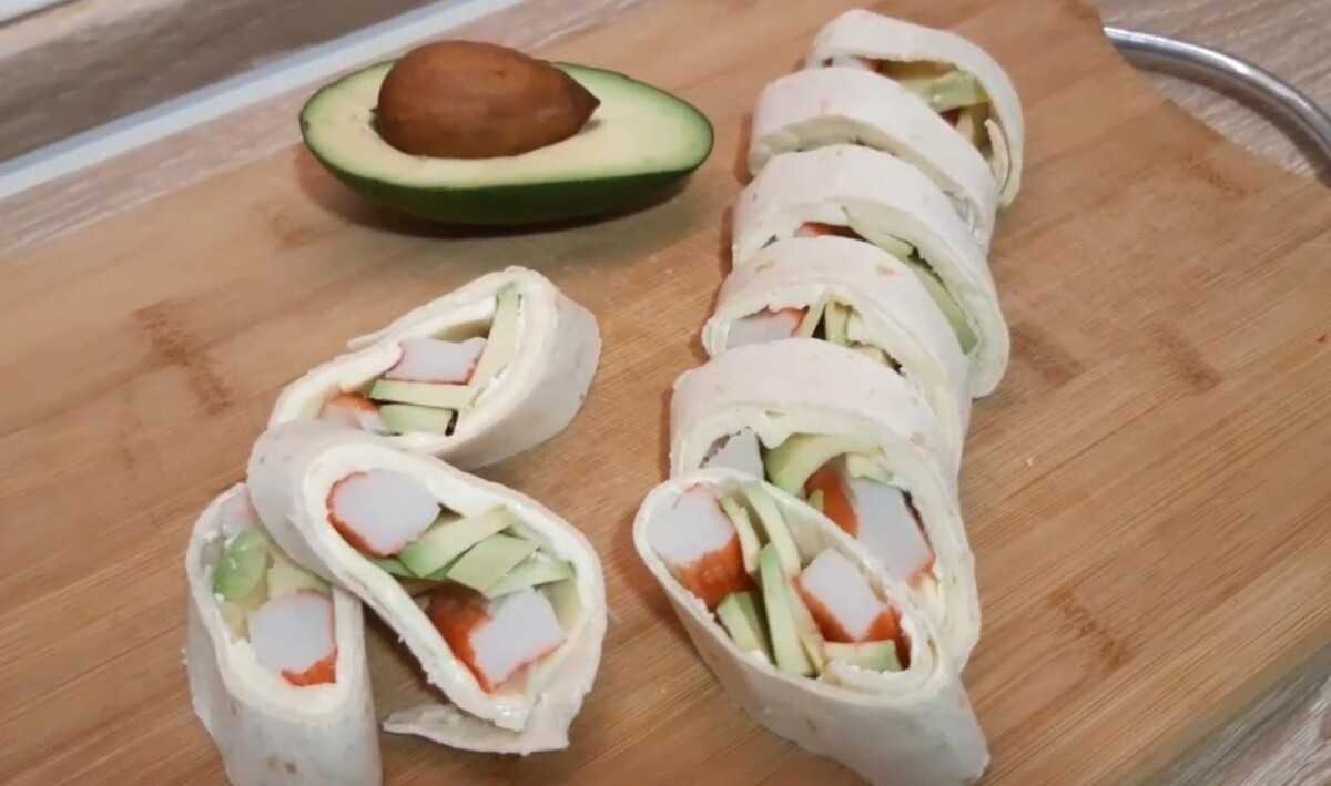 Вкусный рулет из лаваша с крабовыми палочками и соусом из икры мойвы