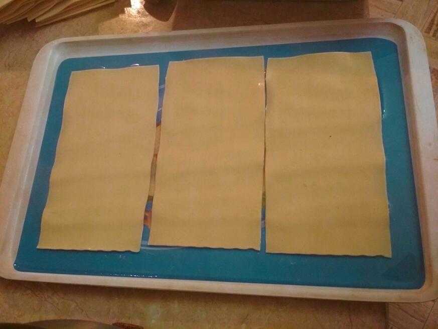 3. В кипящей воде отвариваем листья лазаньи, буквально пару минут. Затем вынимаем из воды, немного остужаем.