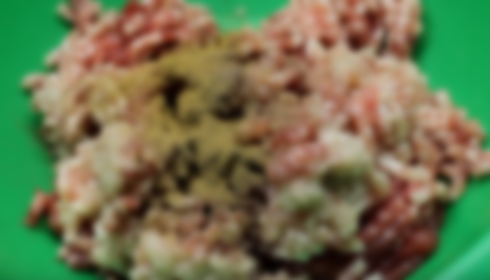 Свиную и говяжью мякоть перекручиваем через мясорубку либо перебиваем в блендере до однородной консистенции.