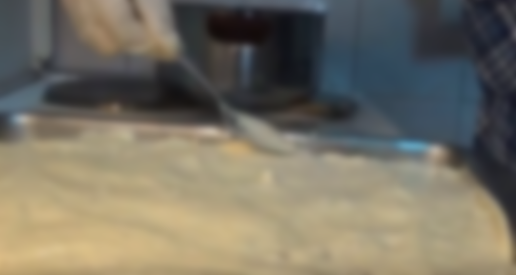 Выкладываем массу в подготовленную емкость, выравниваем поверхность обратной стороной большой ложки.