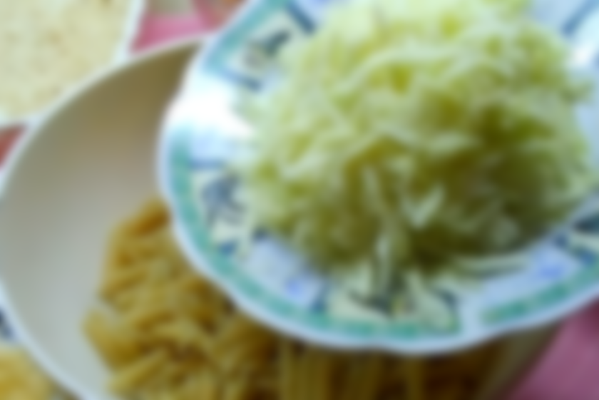 Тщательно вымытые и высушенные полотенцем кабачки натираем на крупной терке, смешиваем с сухими макаронами.