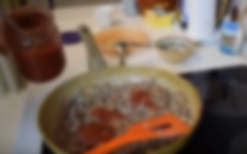 - После добавляем томат-пюре, специи, жарим пару минут и снимаем с огня.