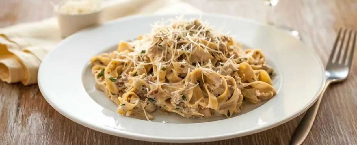 Индейка со сливочной пастой, грибами и сыром