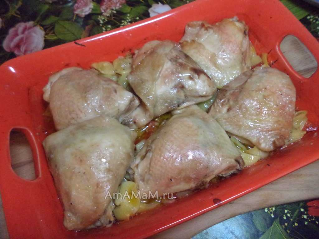 - Бедрышки куриные — 6 штук (это около 1 кг) или небольшая целая курица;