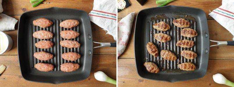 Колбаски из фарша говядины с бараниной (чевапчичи) жареные на сковороде-гриле