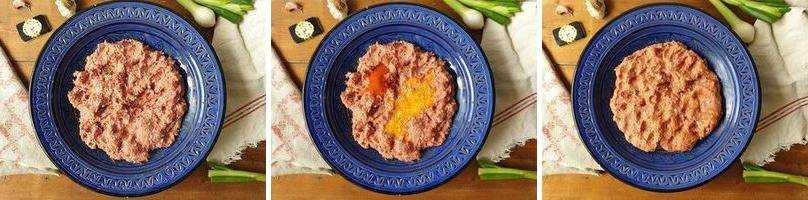 Основной ингредиент мясной фарш: баранина, телятина, свинина или говядина, вы можете смешать два или три вида мясного фарша, содержание мяса и приправ может варьироваться.