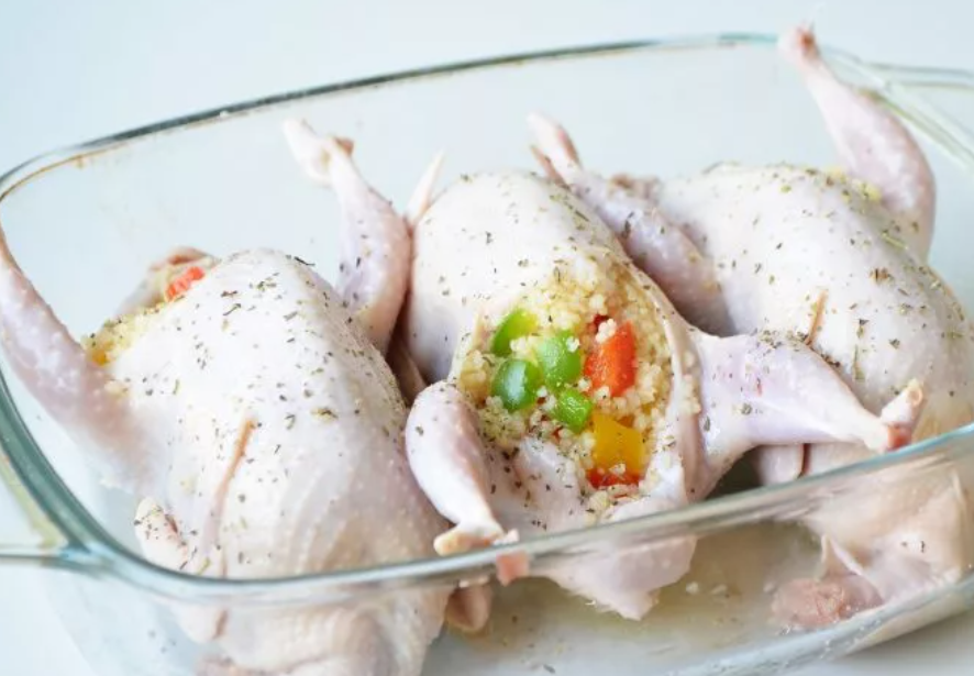 - Поместить мясо в смазанную растительным маслом форму. Сверху перепелов следует полить маринадом (достаточно 2-3 ст. л.).