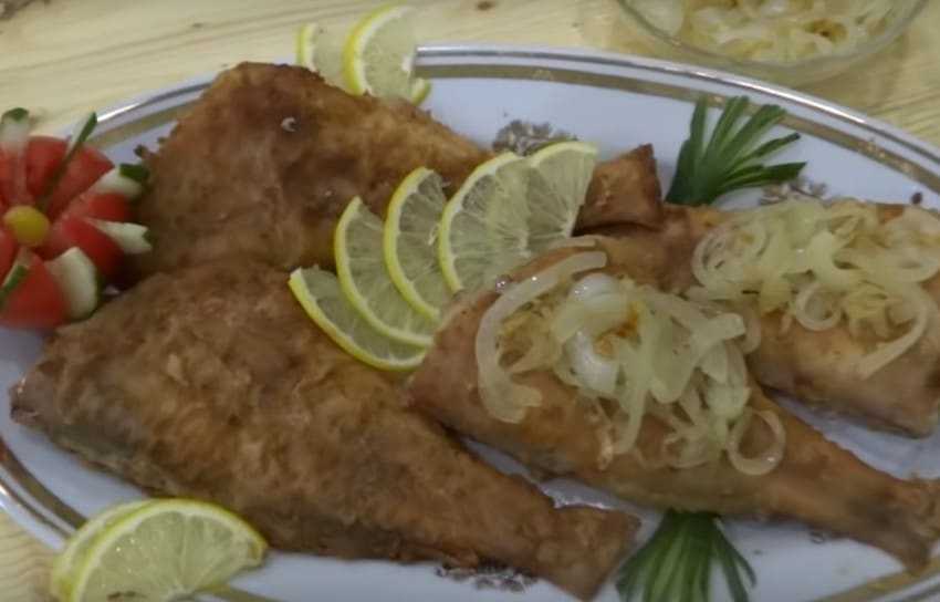Очень простой способ – пожарить рыбку в панировке из муки с луком. Получается ароматное, сытное и сочное блюдо. Сочетать его можно с разными гарнирами: рисом, картофельным пюре или с тушеными овощами.