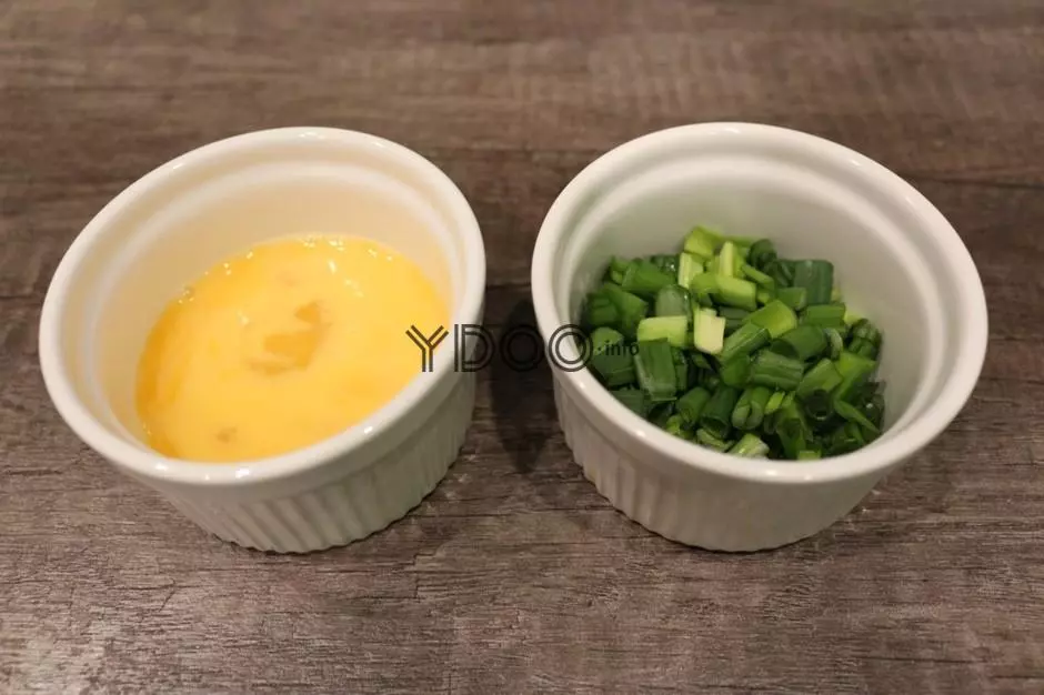 - Положите в миску яйцо и курицу с соусом на рис. Посыпать зеленым луком.