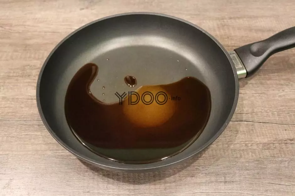- Ставим сковороду на средний огонь. Вливаем 2 ст.л. соквого соуса и 2 ст.л. воды. Даем закипеть.