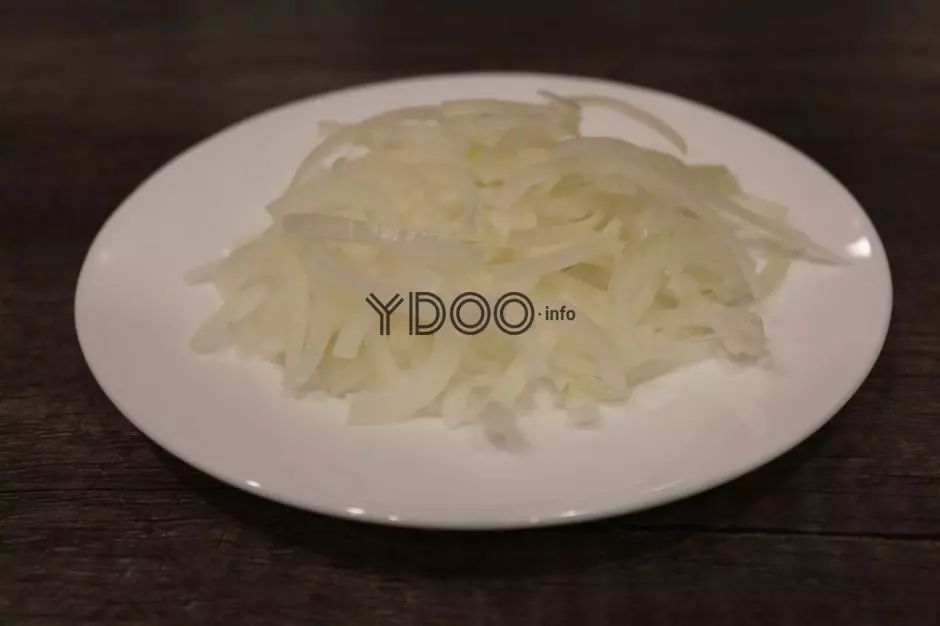 Отрежьте нужное количество лука, очистите его от кожицы и нарежьте половинками (или даже четвертинками).