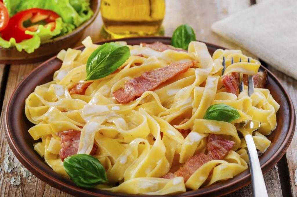 Рецепт пасты с беконом и курицей в сливочном соусе: