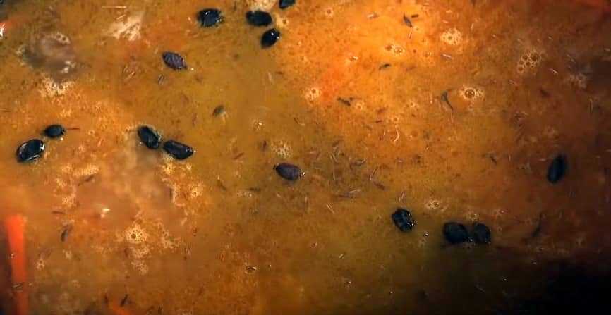 И важно знать, что водой ее не смыть. Она остается и после варки