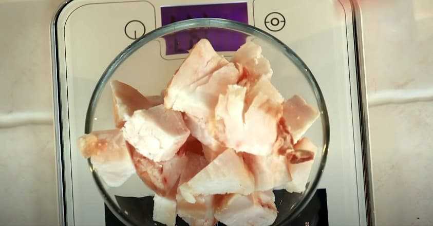 Сначала подготовим курдючное сало. Нам оно потребуется в жидком виде, поэтому придется его растопить. Для этого нарезаем курдюк небольшими квадратиками.