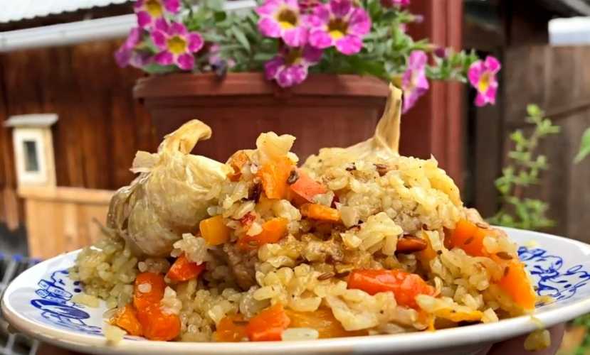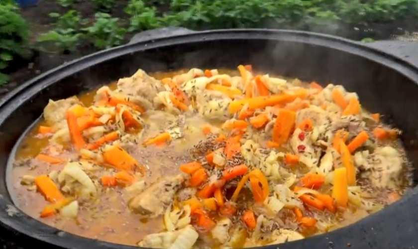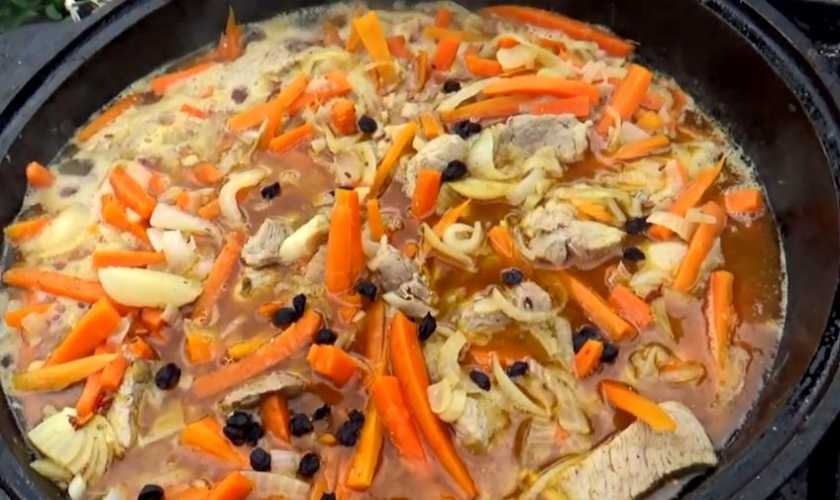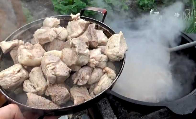 Вариант 2: Быстрый рецепт плова из свинины на костре