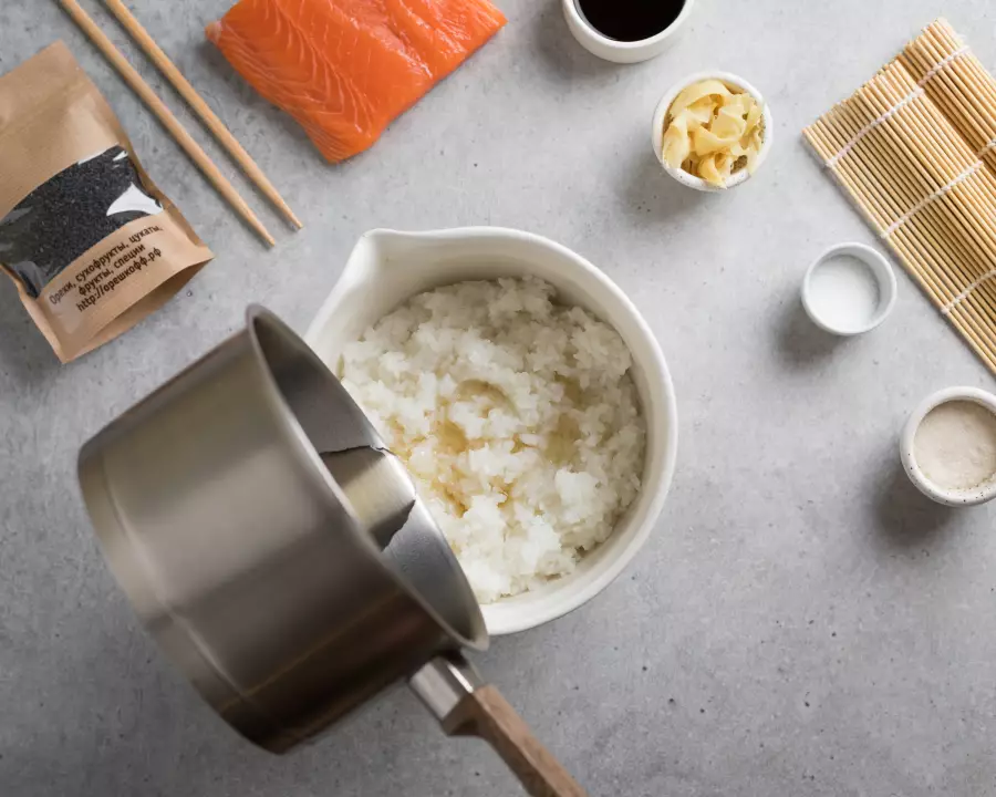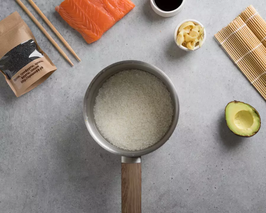 Рис — основной ингредиент суши, поэтому к его выбору и приготовлению следует подойти с особой ответственностью. Для этих целей идеально подходит только особый японский рис, который помечают маркировкой на упаковке, как рис для суши. Из того, что массово распространён у нас лучшим для суши считается круглозернистый рис.