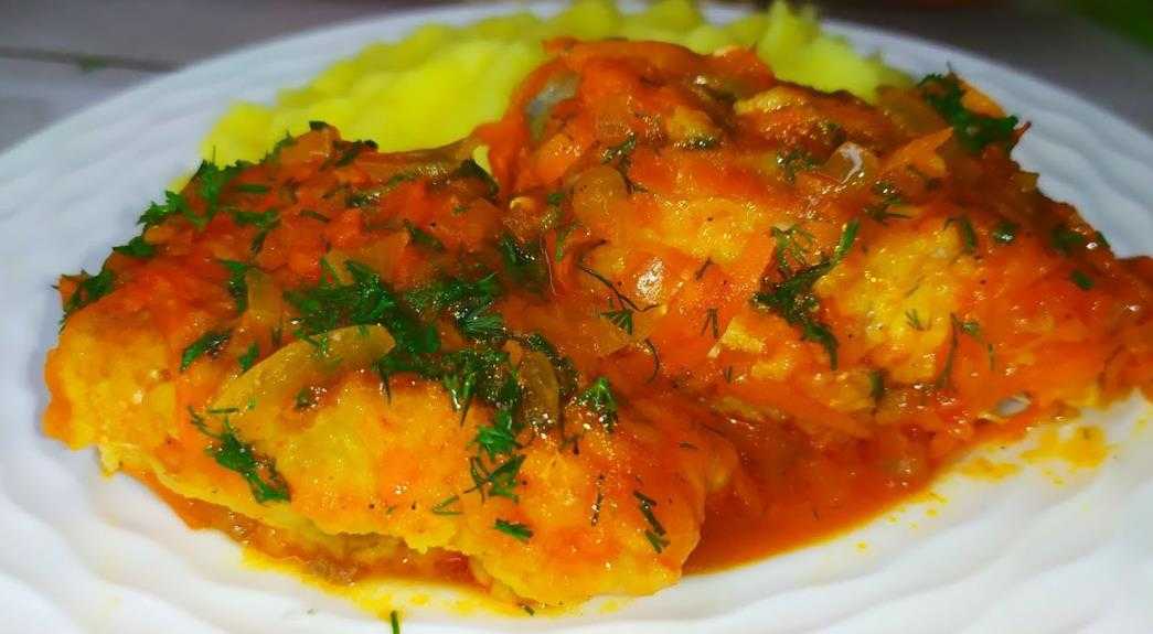 Рецепт минтая на сковороде в томатном соусе с морковью и луком