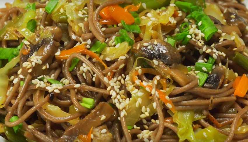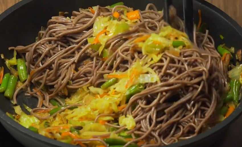 Рецепт приготовления гречневой лапши с овощами и соусом терияки
