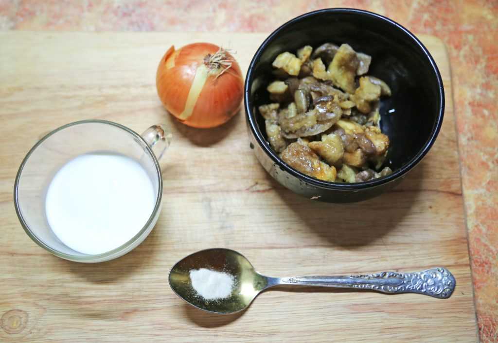 Ингредиенты для рецепта грибы в сливочном соусе с фото: