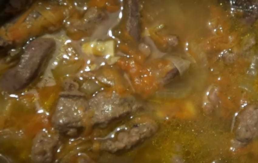 - Если окажется недостаточно жидкости, то добавьте немного воды или бульона