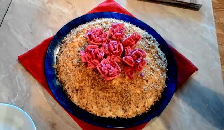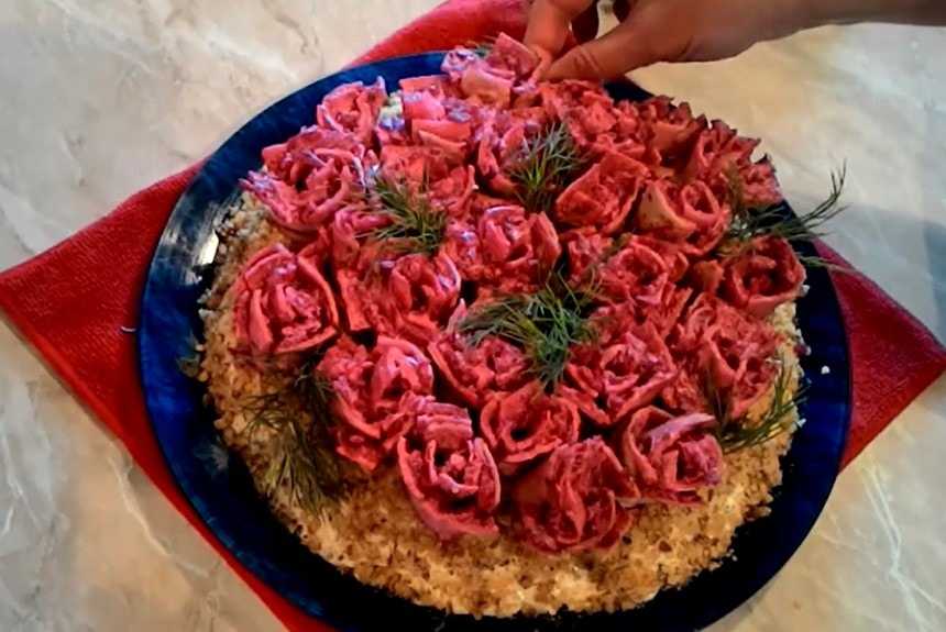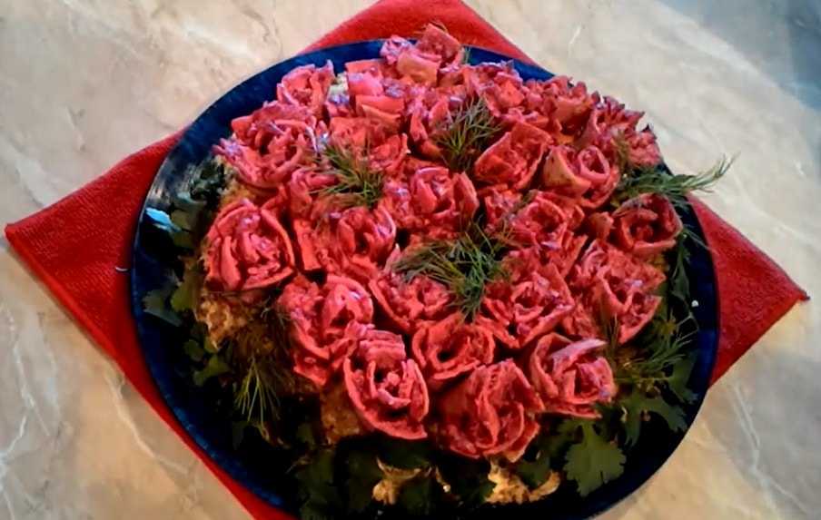 В салате по этому рецепту прекрасно сочетаются все ингредиенты. Оригинальное оформление и прекрасный вкус этого нарядного праздничного салата удивит и порадует ваших гостей.